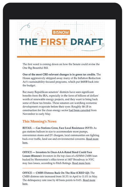 First Draft subscribers receive in-depth reporting, expert commentary and curated analysis on major trends, deals and players in the commercial real estate market, all delivered straight to your inbox five times a week.